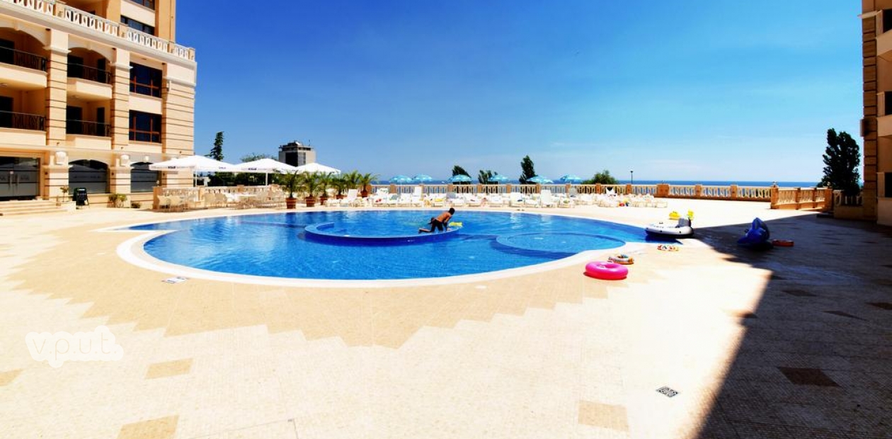 "Сabacum Beah Residents" - one of the most beautiful residential complexes on the Bulgarian coast. Commissioned by the government board and consecrated by the Patriarch of Bulgaria in 2010. The complex has green areas, swimming pool with jacuzzi, sunbeds, umbrellas. On its territory there is a restaurant, children's playground, parking. Security of the complex is carried out round the clock. The apartment is located on the southern side of the building. Designer wrought furniture allows you to feel the ease and not a jumble of rooms. Extraordinary project construction allows you to enjoy the beautiful panorama of the sea. With high quality of the construction, there is no need to use air conditioning - there is an opportunity to breathe the sea air. All necessary appliances are in the apartment. Cable TV. TV-sets in every room. In the kitchen full set of dishes.